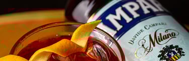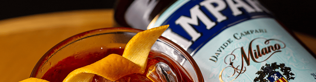 Gin, campari, e vermute rosso alcoólico e amargo.