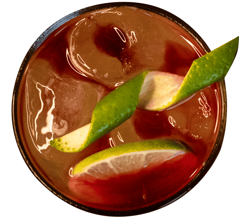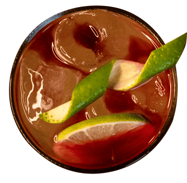 Whisky bourbon, calda cítrica e vinho tinto- refrescante com notas amadeiradas.